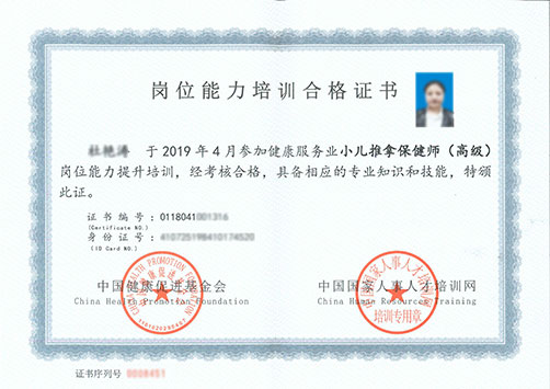 本证书由中华人民共和国人力资源和社会保障部部属网站中国人事人才培训网和中国健康促进基金会联合监制并颁发。