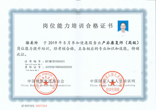 本证书由中华人民共和国人力资源和社会保障部部属网站中国人事人才培训网和中国健康促进基金会联合监制并颁发。